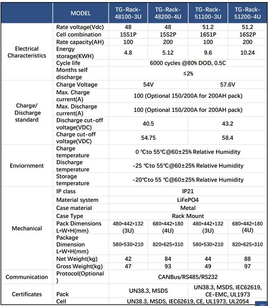 • Cycle life is no less than 6000 cycles @80% DOD, 0.5C.