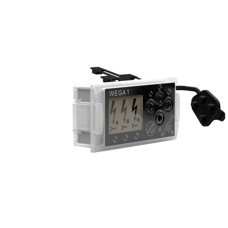 Horstmann Wega 1 is a three-phase voltage testing system that indicates subsequent medium voltage conditions such as Voltage present, Voltage present and passed maintenance test, Voltage present and integrated maintenance test passed, and Voltage not present. Wega 1 and Wega 1 V integrated voltage detecting systems are available here.