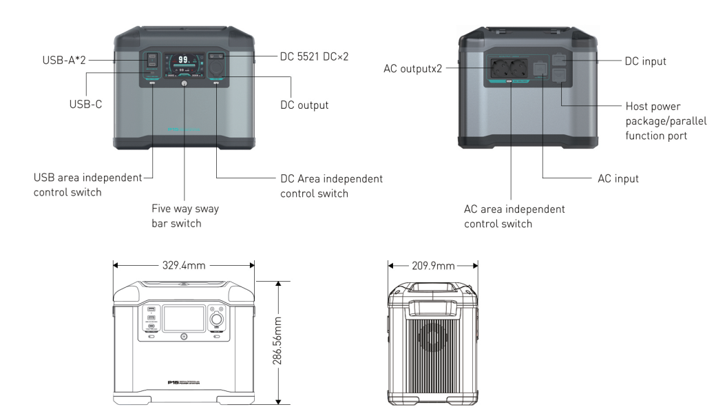 | AC Output (X2) | 1500W AC Output Socket |