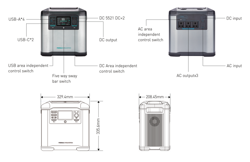 | AC Output (X2) | 2200W AC Output Socket |